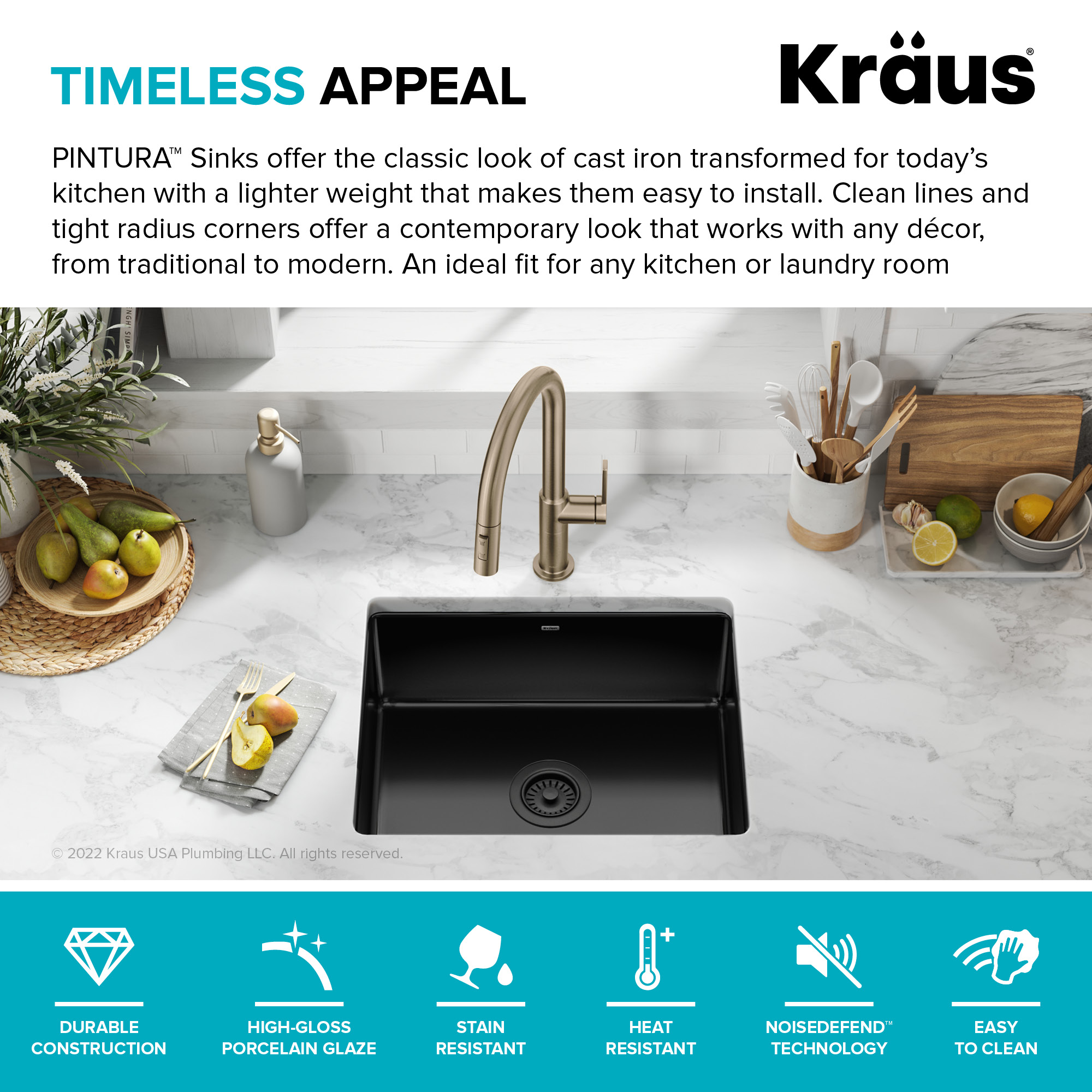 Kraus Pintura 21 Undermount Porcelain Enameled Steel Single Bowl Kitchen Sink In Black Walmart Com