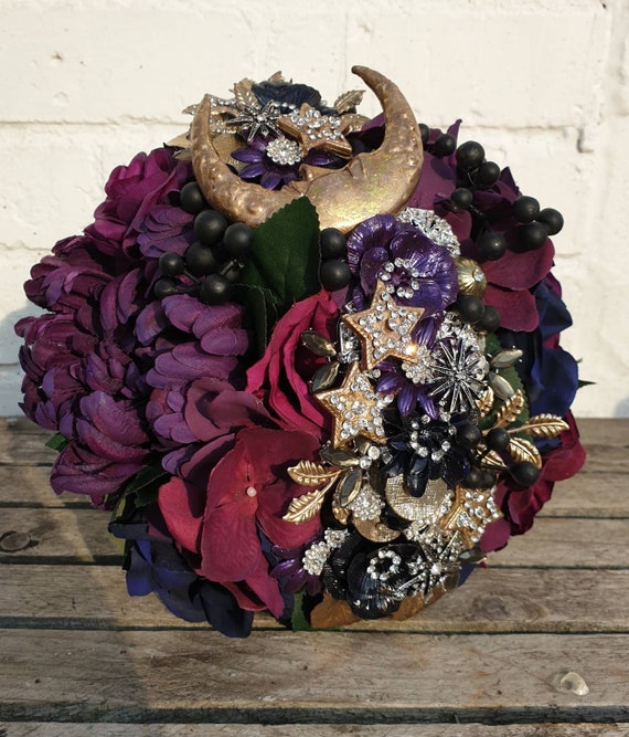 Celestial Moon And Stars Alternative Bouquet Wedding Flowers Peony Hydrandea Bouquet Bejeweled Bouquet Custom Made Any Colour 18 20 Weeks Etsy Uk